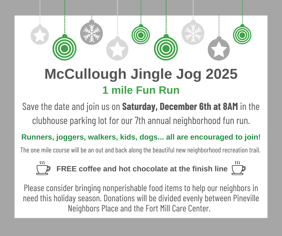 SWIM MEET TBD for 2026 All residents are welcome to come out and show support for our team! To reduce overflow parking we are kindly requesting that McCullough residents and swimmers walk to the pool or make arrangements to be dropped off and/or picked up. However, you may still see additional cars parked along Country Lake Drive during the meet. We greatly appreciate your patience for the few hours that we welcome The Palisades to McCullough. Thank You | ||