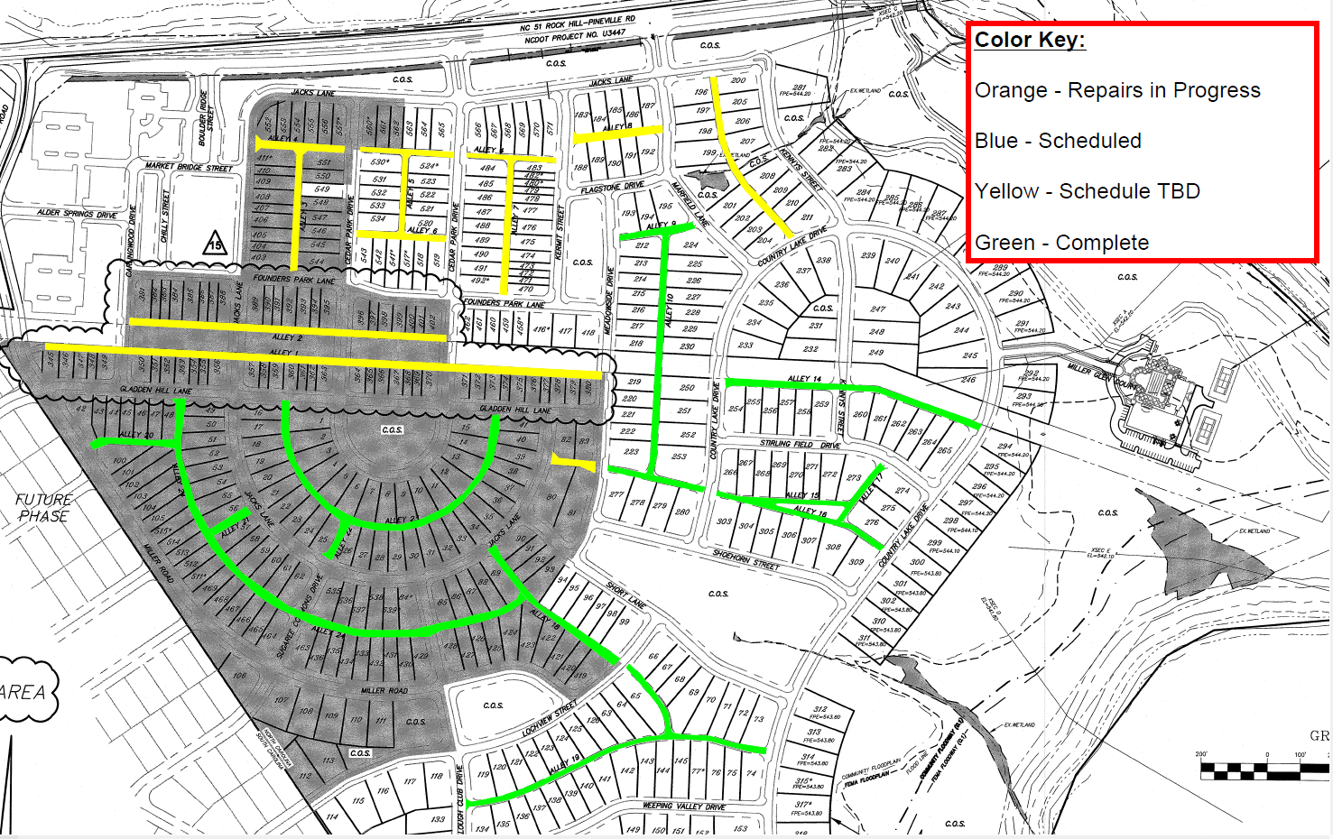 Pulte Updates Alley Project Update as of 12.3.25 Please see the map below, which has been updated to reflect completed alleys, and the next ones up!